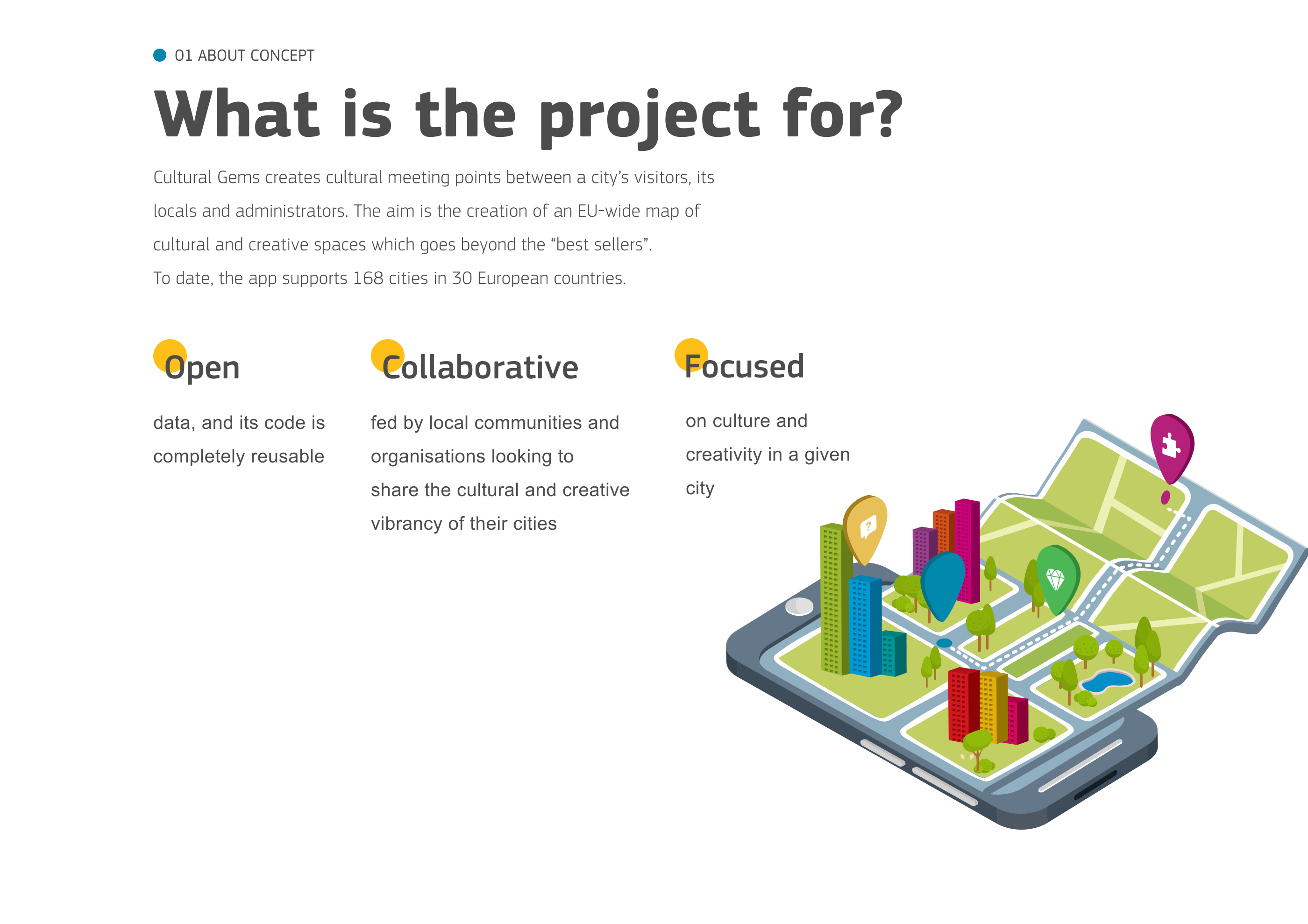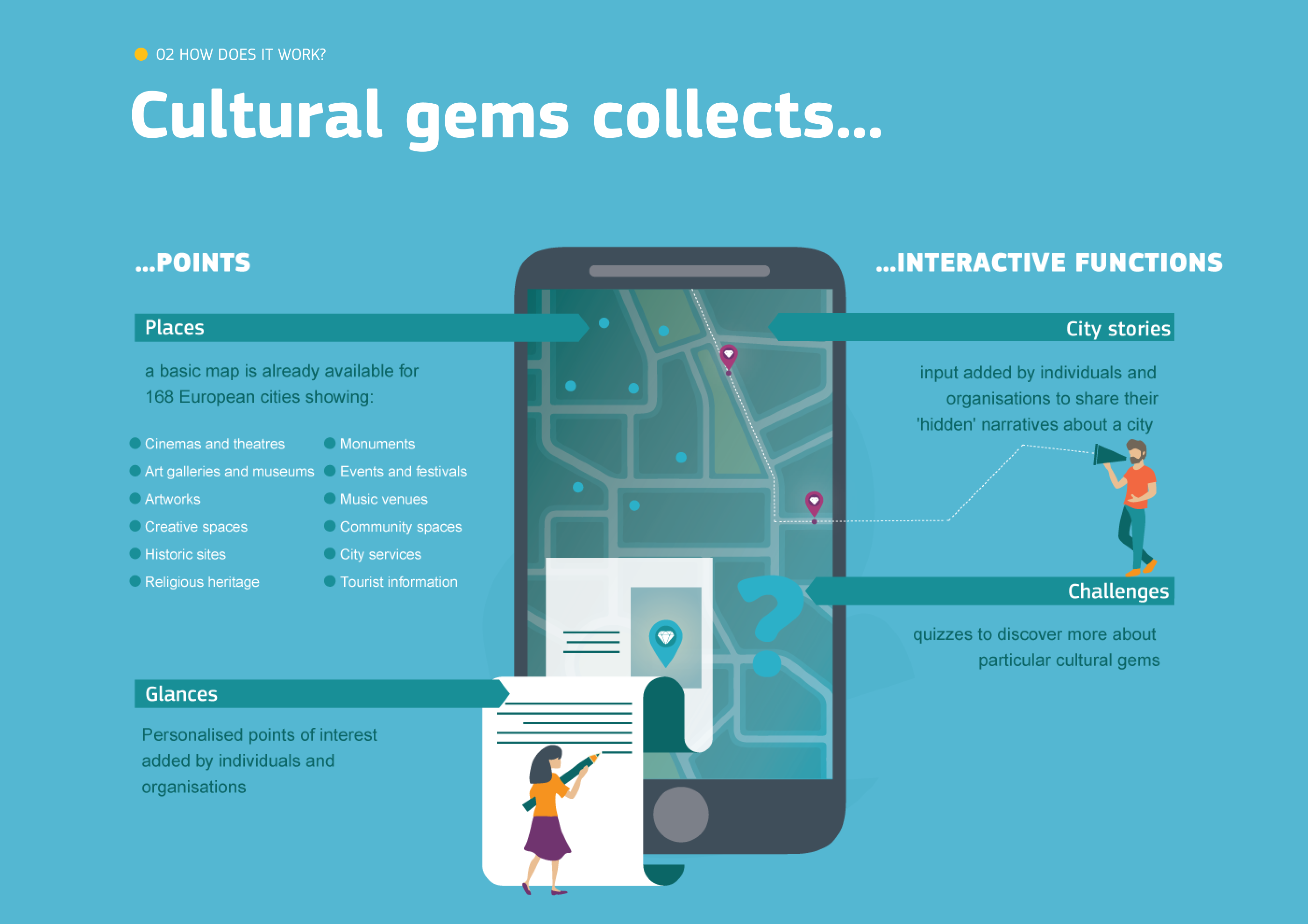 Cultural Gems creates cultural meeting points between a city’s visitors, its locals and administrators. This online tool contains a variety of information on 168 cities in 30 countries across Europe, ranging from cultural attractions and facilities to creative economies, and from human capital and education to quality of governance.